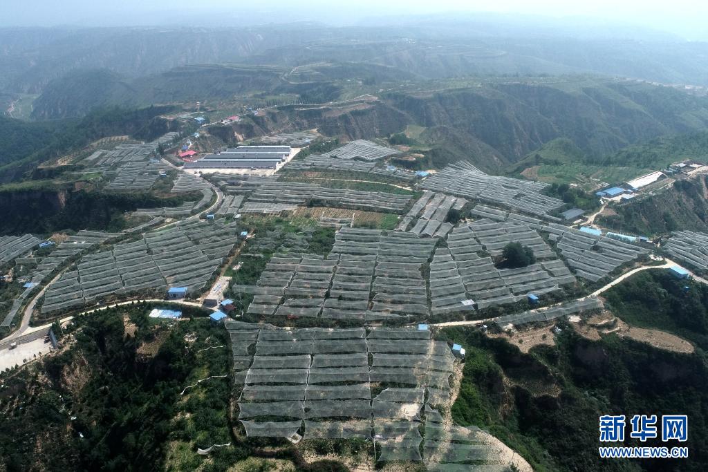 2020年7月29日無人機(jī)拍攝的延安市延川縣梁家河村山地蘋果園(無人機(jī)照片)。新華社記者 張博文 攝