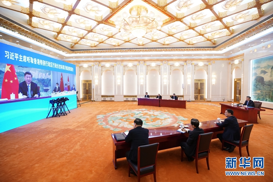 1月27日,國(guó)家主席習(xí)近平在北京以視頻連線方式聽(tīng)取了香港特別行政區(qū)行政長(zhǎng)官林鄭月娥2020年度的述職報(bào)告。新華社記者 鞠鵬 攝