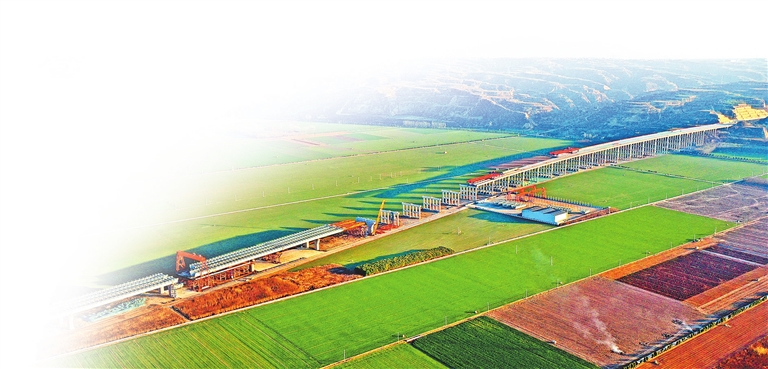 ??12月16日,孟州市境內,良田沃野間,沁伊高速黃河特大橋正在提速建設。中原大地一片生機。 白水平 攝